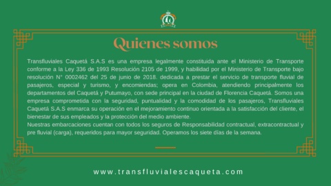 Transfluviales Caquetá S.A.S es una empresa legalmente constituida ante el Ministerio de Transporte